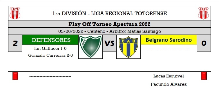 Este domingo 5 de junio, Defensores derrotó en el Santos Pierángeli 2-0 a Belgrano de Serodino por los playoff del Torneo Apertura y así se clasificó a las semifinales del año.