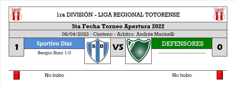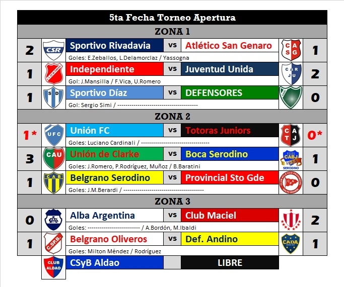 RESULTADOS DE LA 5ta FECHA