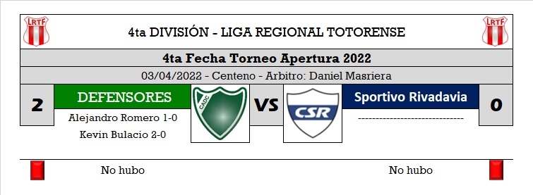 Este domingo 3 de abril, por la cuarta fecha del torneo apertura 2022 de la Totorense, los pibes de la reserva verde le ganaron a su par de Sportivo Rivadavia por 2 a 0 con goles de Alejandro Romero en la primera parte y Kevin Bulacio, con un soberbio tiro libre en el complemento.