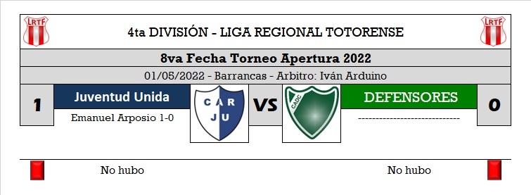 Este domingo 1 de Mayo, por la 8va fecha del apertura, Defensores viajó a Barrancas para enfrentar a Juventud Unida.