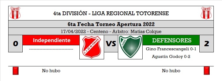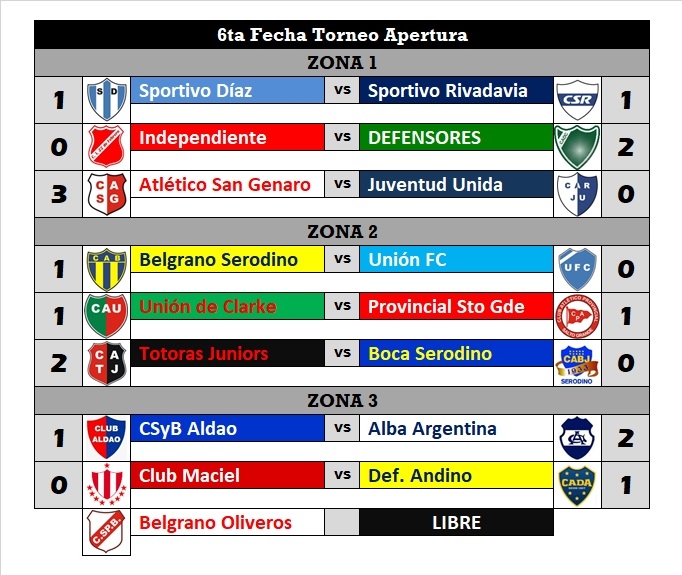 RESULTADOS DE LA 6ta FECHA