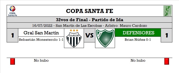 Este sábado 16 de julio, Defensores inició su participación en la Copa Santa Fe 2022. Por la ida de los 32vos de final, en condición de visitante, igualó 1-1 frente a Recreativo General San Martín, de San Martín de Las Escobas.
