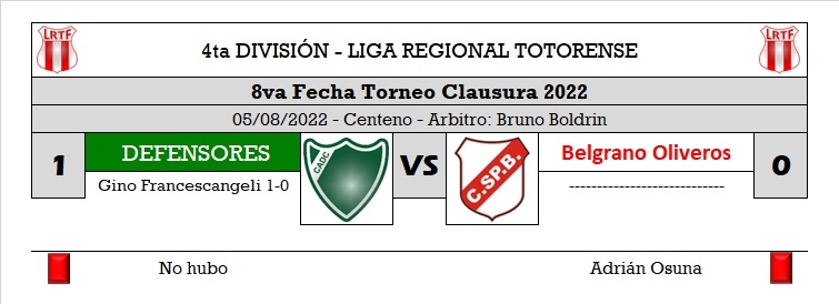 La 8va fecha del torneo Clausura 2022 tuvo el primer adelanto el día miércoles 3 de agosto, dónde Unión de Totoras recibió a CSB Aldao.