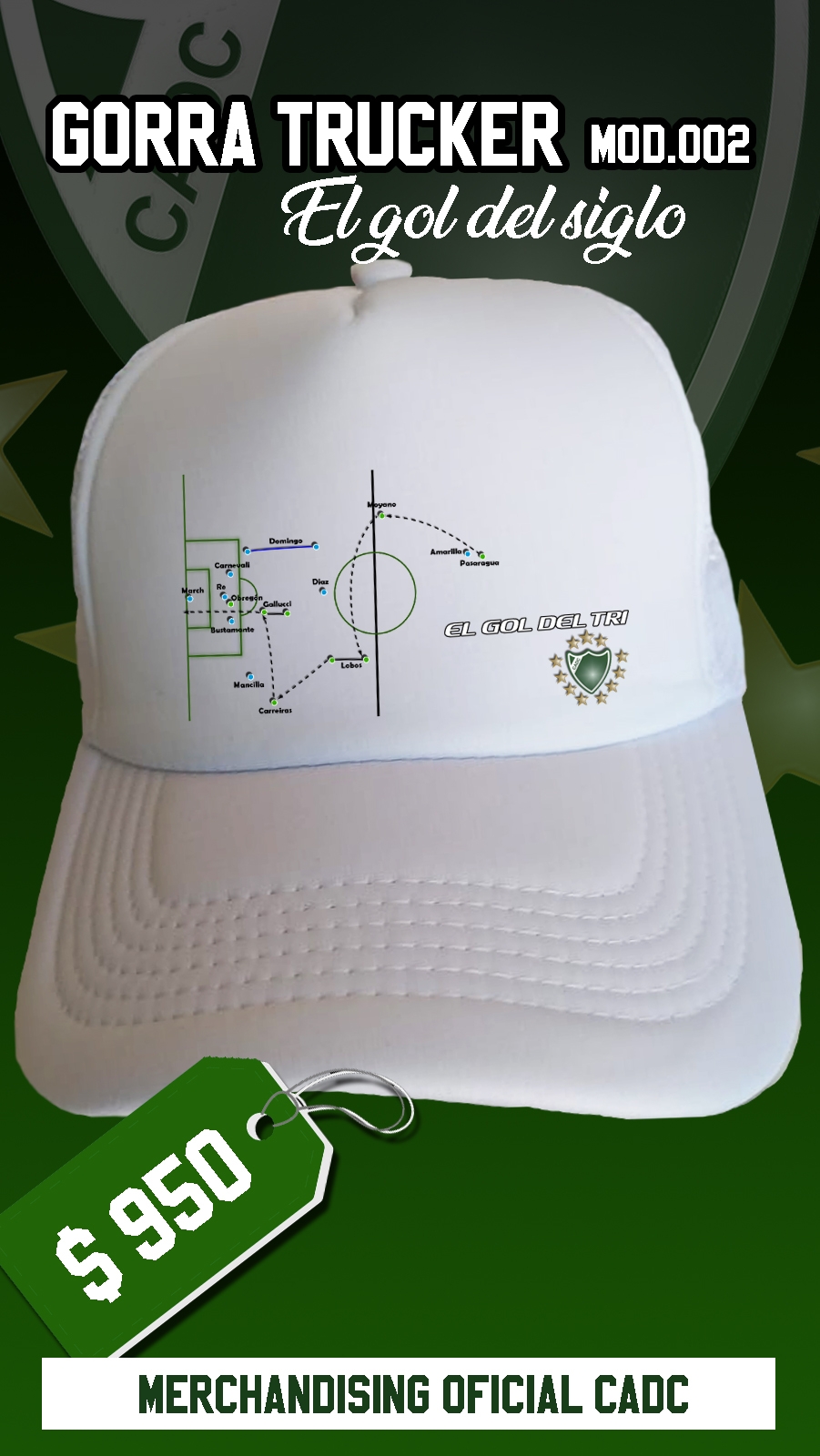 Llegan los productos oficiales del Club Atlético Defensores de Centeno. Te mostramos dos diseños en dos gorras diferentes, blanca completa y blanca con verde.