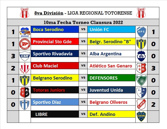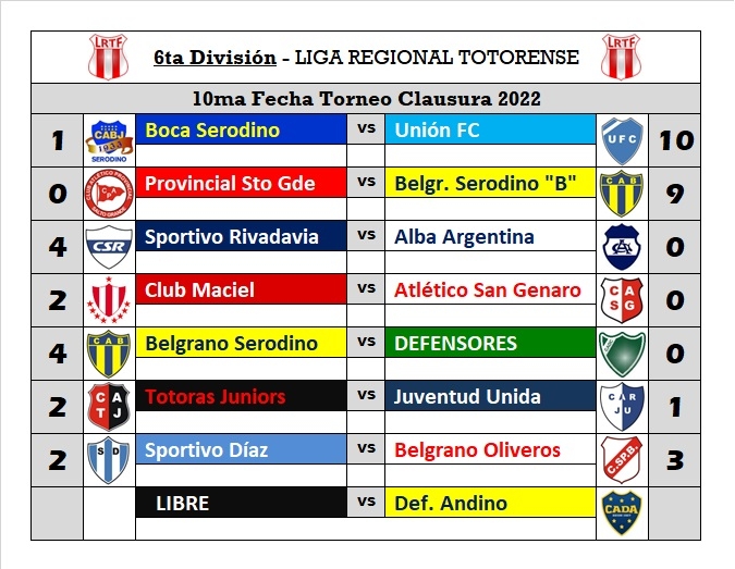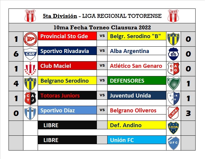 A continuación, todos los resultados, tablas de posiciones de las cuatro categorías y la próxima fecha que se jugará el viernes 7 del corriente, recordando que también habrá fecha el lunes 10, aprovechando los feriados nacionales.