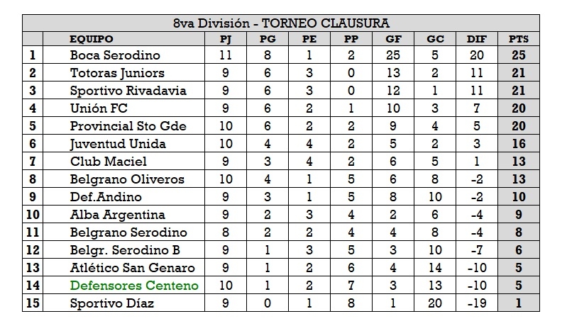 Belg. Serodino 1 - Defensores 0