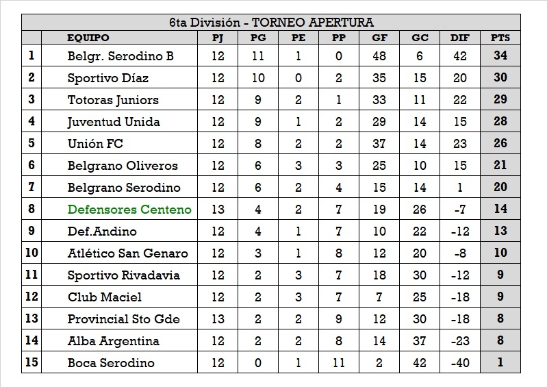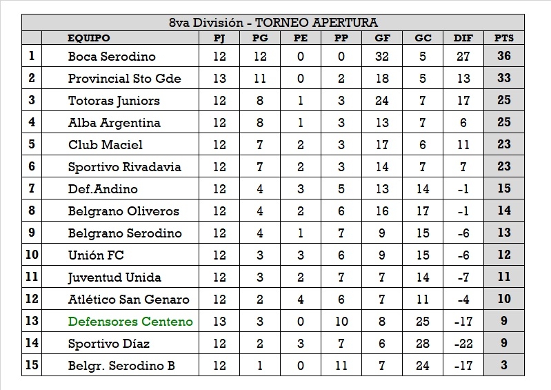 B.Oliveros 0 - Defensores 2 (L.Rodrigaño x2)
