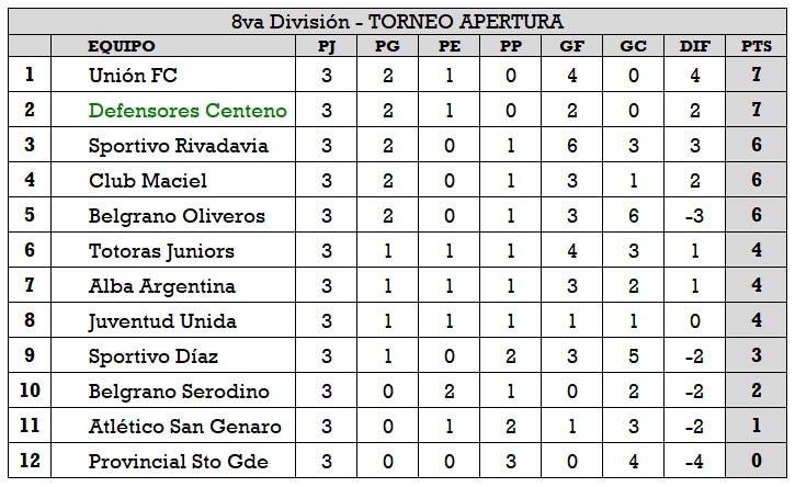 En 8va división el triunfo fue para Defensores por 1 a 0 con gol de Marcio Nowichi.