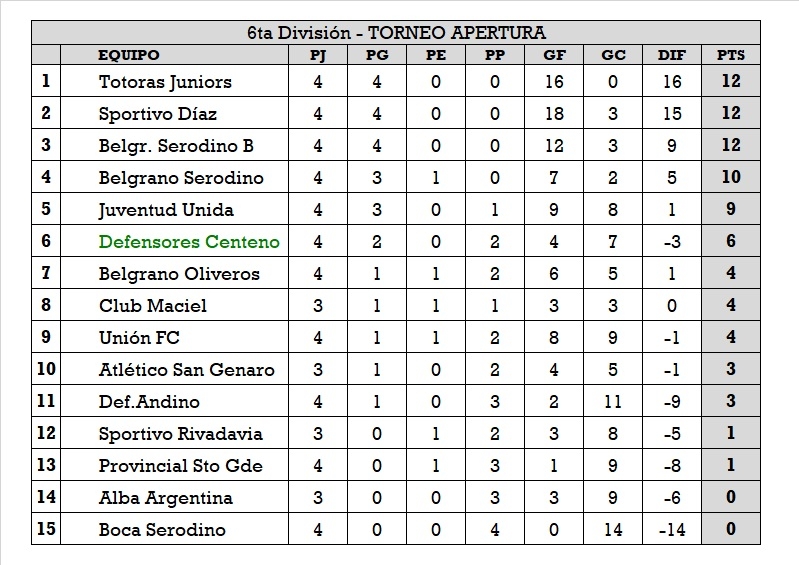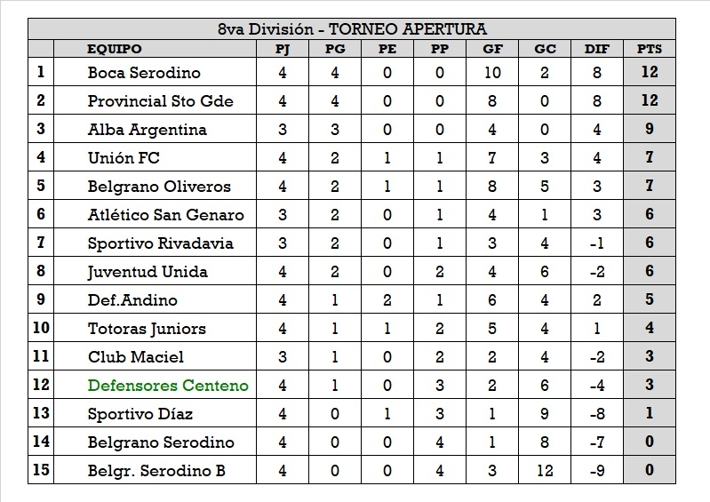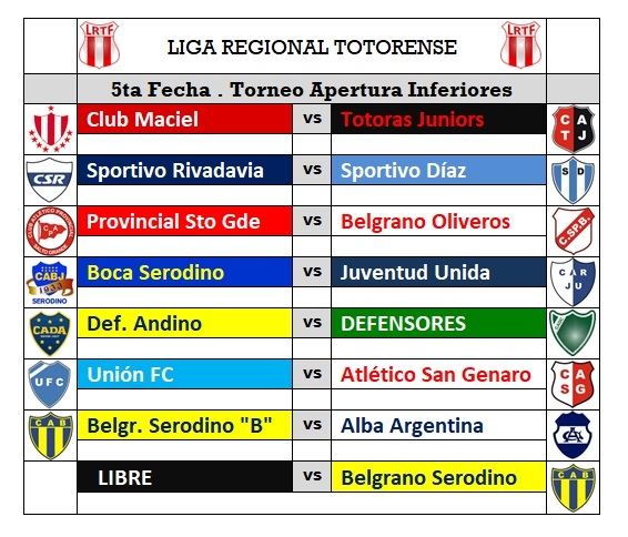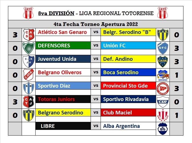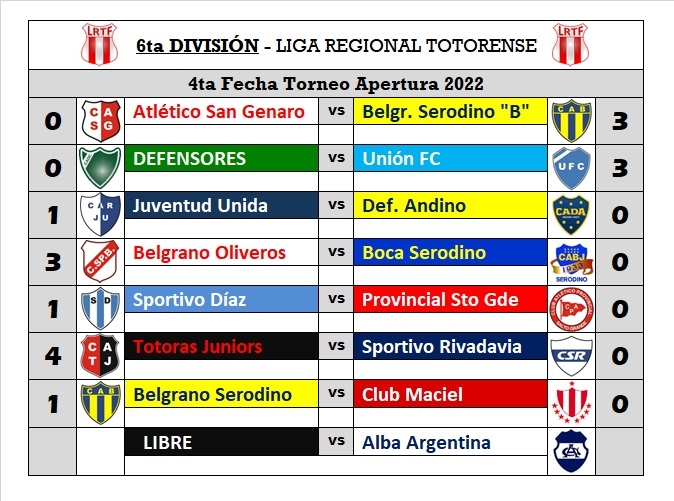 Este sábado 2 de abril, por la cuarta fecha del torneo apertura de la Liga Totorense, las inferiores del Club Defensores recibieron en el Santos Pierangeli la visita de Unión de Totoras. Durante la jornada se registraron los siguientes resultados: