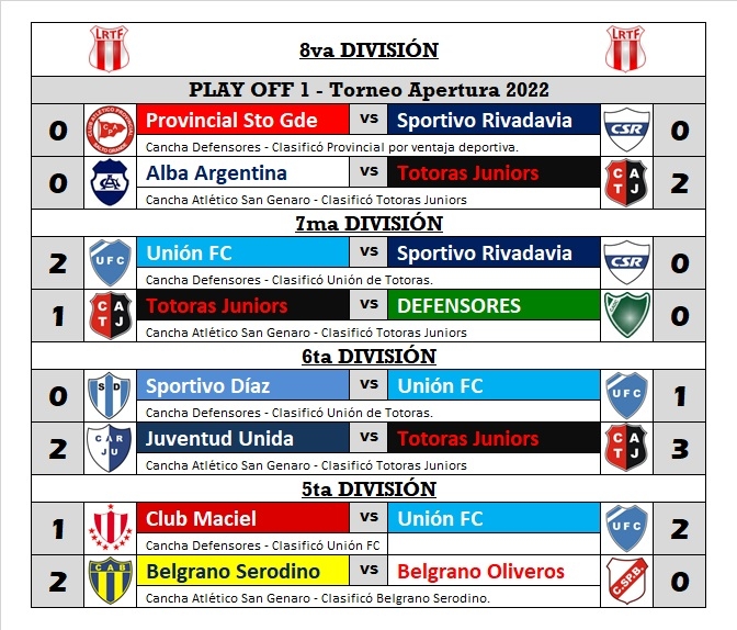 Hoy sábado 25 de junio se jugaron los play off del torneo apertura, para determinar los segundos semifinalistas en cada una de las divisiones. Los partidos se jugaron en cancha de Defensores y Atlético San Genaro.